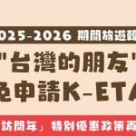 - 2025–2026 韓國入境最新規定|台灣旅客免申請 K-ETA,一次看懂入境須知2025 或 2026 年去韓國還要不要申請 K-ETA? 最新答案來了!韓國政府已經在 2025 年 9 月 25 日正式公告,K-ETA 電子旅行授權的臨時豁免將持續延長到 2026 年 12 月 31 日(星期四)。