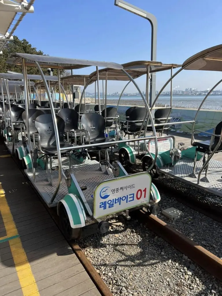 仁川的永宗島海濱鐵路自行車是一種很受歡迎的旅遊項目。它位於仁川市的永宗島,沿著海濱鐵路漫遊,是一種不可多得的體驗。