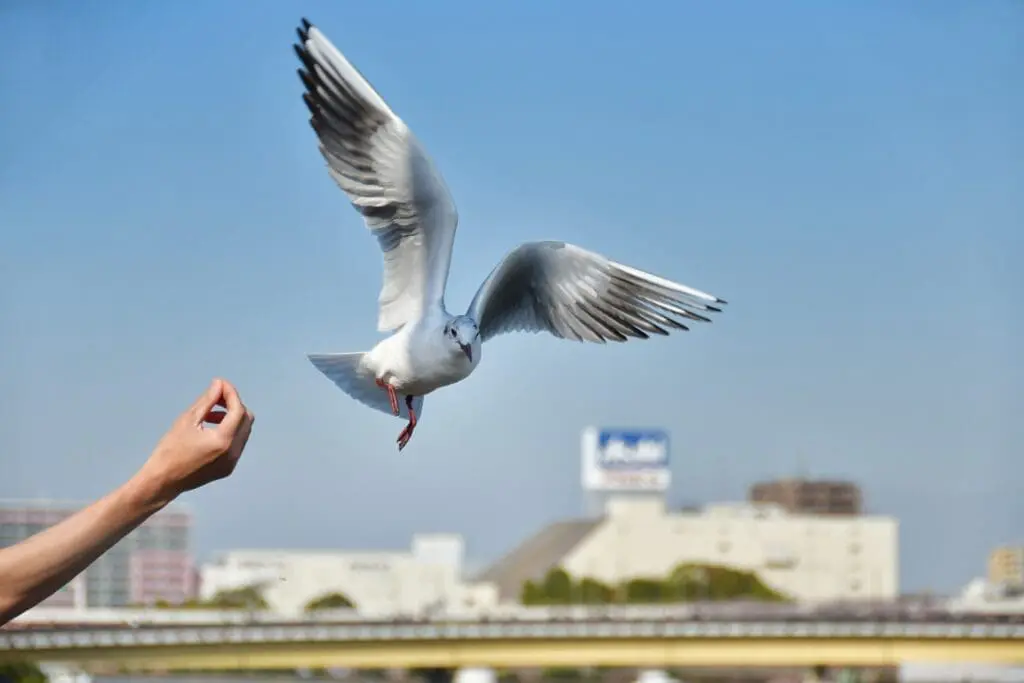 如果您膽子大一點,還可以嘗試將餅乾放在手上不丟出,海鷗會直接飛過來從您手中叼走餅乾。這樣近距離的互動絕對是一次難得的體驗。記得要穩住您的手,不要被海鷗的速度嚇到哦!