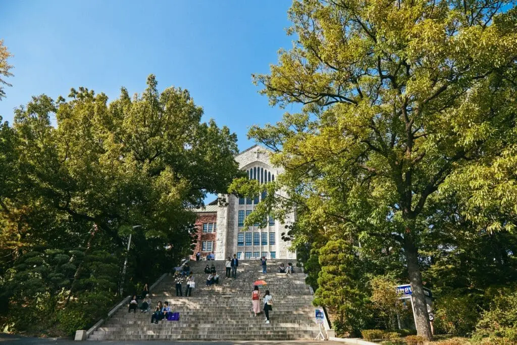 梨花女子大學的校園環境非常美麗,四季風景各有不同。秋季可以欣賞到紅葉和楓葉,春季可以欣賞到櫻花盛開,校園的古樸教學大樓都被綠色包圍。此外,校園內還有一些幽靜的小花園和長滿銀杏樹的校園大道,非常適合散步和拍照。