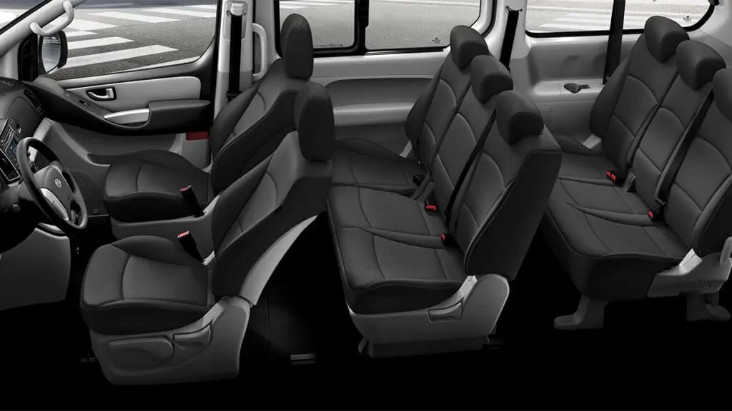 現代Grand STAREX 豪華商旅車強調商務休旅多功能用途,所以在座椅的配置、收納、移動等多變化功能上,表現的相當出色。尤其座椅底部便利的獨特滑軌設計,加上獨特的中間座椅收折功能,使用上極為便利。現代 Grand STAREX 豪華商旅車最多可10位旅客但比較擁擠,建議9位以內,適合觀光與接送機最多7位客人+ 4件大行李。