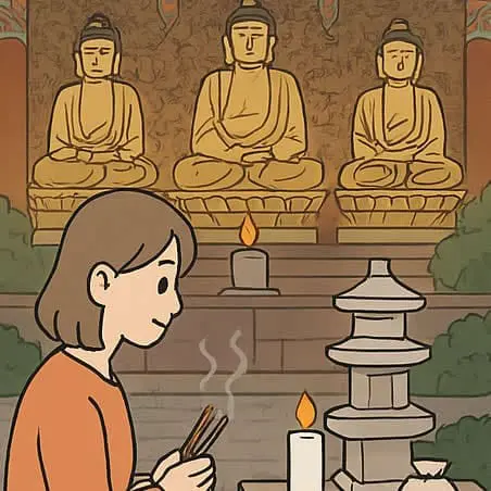 重點參拜地在【大雄殿前三層石塔】。將你的蠟燭與白米供品放置於此,點香誠心祈願,香可插在旁邊香爐。
