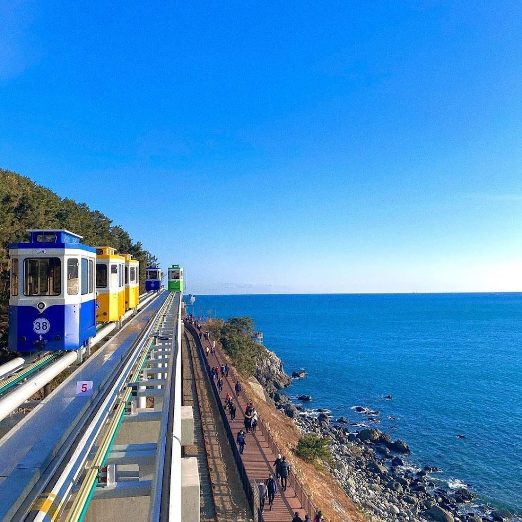 海雲台藍線公園的海岸列車沿著東海岸行駛,從尾浦到青沙浦全程約 5 公里,能飽覽大海、岩岸與漁村景致。車廂設計舒適,大片玻璃窗讓人盡情欣賞海天一色。沿途可停靠青沙浦燈塔、松亭海水浴場等景點,是浪漫又輕鬆的海岸之旅。