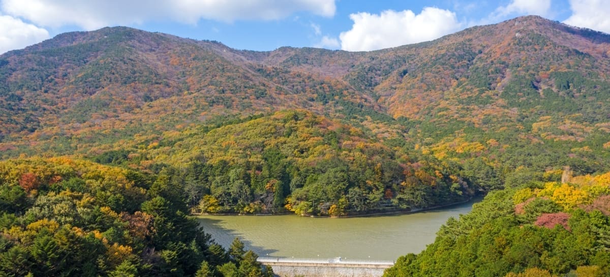 聖知谷水源地是釜山地區重要水源,如今成為兒童大公園的一部分。園內以湖水與楓紅交織的景色聞名,棧道平緩易走,適合全家大小散步。湖面上倒映楓葉的景象特別迷人,搭配周邊扁柏林的清新空氣,是秋季最受歡迎的賞楓景點之一。