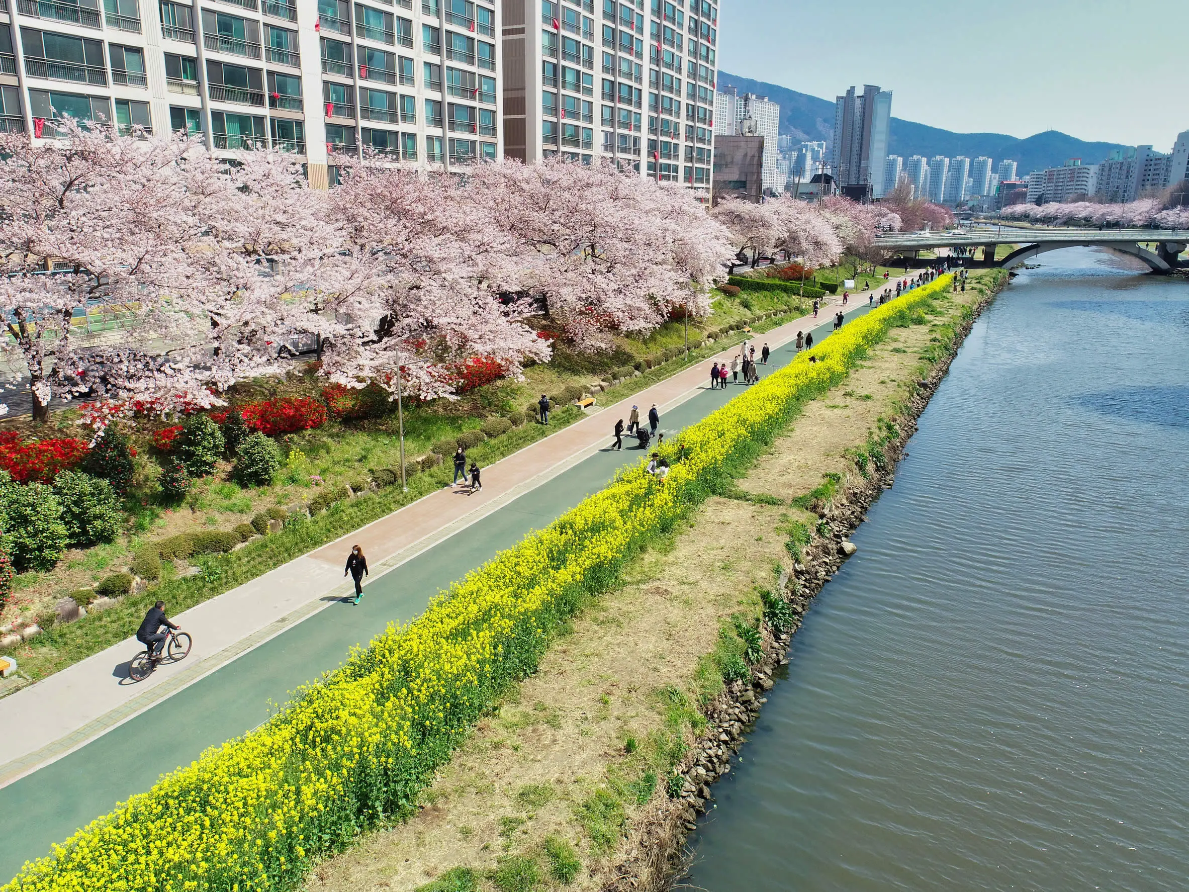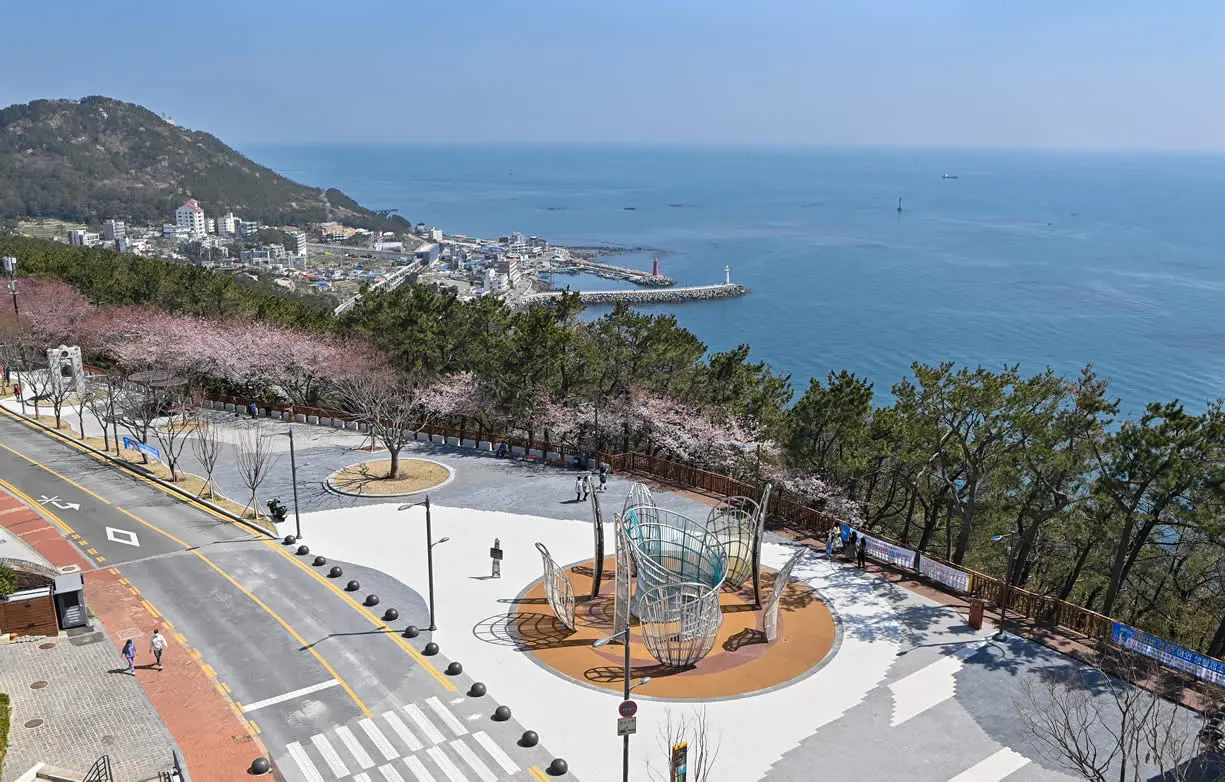 是釜山著名的櫻花景點,每年三月開始,釜山櫻花滿開,許多遊客慕名而來到釜山賞櫻,除了櫻花之外,大渚生態公園中也廣植油菜花,種植面積達到76萬平方米,是韓國最大花海。春天油菜花盛開,夏天向日葵和大波斯菊一望無際,營造出夢境般的風景。到了秋天,還能欣賞到為人們帶來靈感刺激的粉黛亂子草,絕美程度令人無法言語,也讓這裡成為釜山必遊景點。