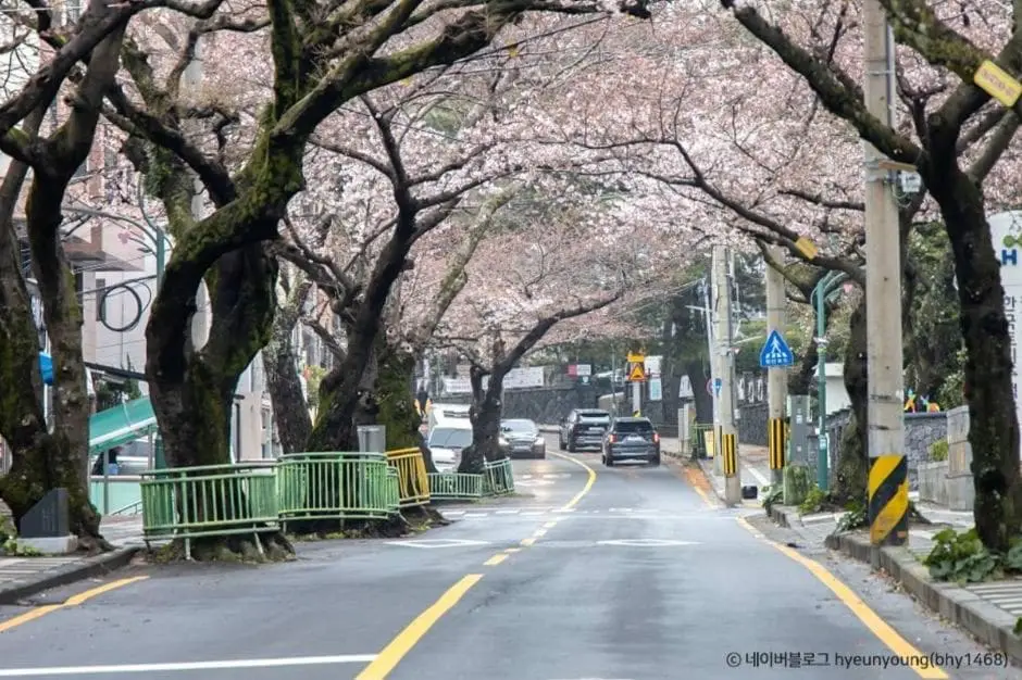 典農路是一條全長1.2公里的櫻花大道,被譽為濟州島賞櫻的鼻祖級景點。沿途兩旁的大型櫻花樹盛開時,花枝繁茂,極具視覺衝擊力。每年三月底,這裡更舉辦櫻花盛典,吸引無數遊客前來拍照打卡。除了美景外,沿路還有咖啡店、服裝店及精品店等,讓你在賞花之餘享受購物與休閒的樂趣!
