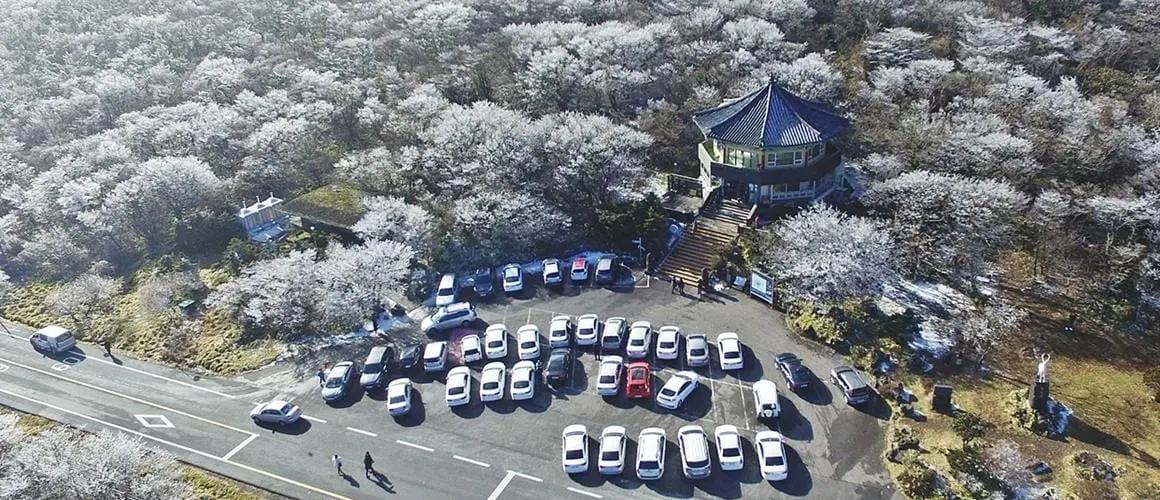 1100高地位於漢拏山,為濟州島上最高的一條公路,不需登山即可欣賞壯麗楓林,也是濟州唯一能駕車直達的最高點。由於海拔高度高,僅管是短時間的路程仍可感受到季節的變化,沿著1100道路行駛,兩側楓葉如火般盛放,是秋日裡兜風的好去處。