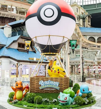 園內各個角落都以寶可夢主題裝扮佈置,像是皮卡丘、噴火龍、初代御三家「妙娃種子、傑尼龜、小火龍」、耿鬼、三地鼠、伊布、呆呆獸、大舌貝等,標誌性的熱氣球也換成精靈球造型!