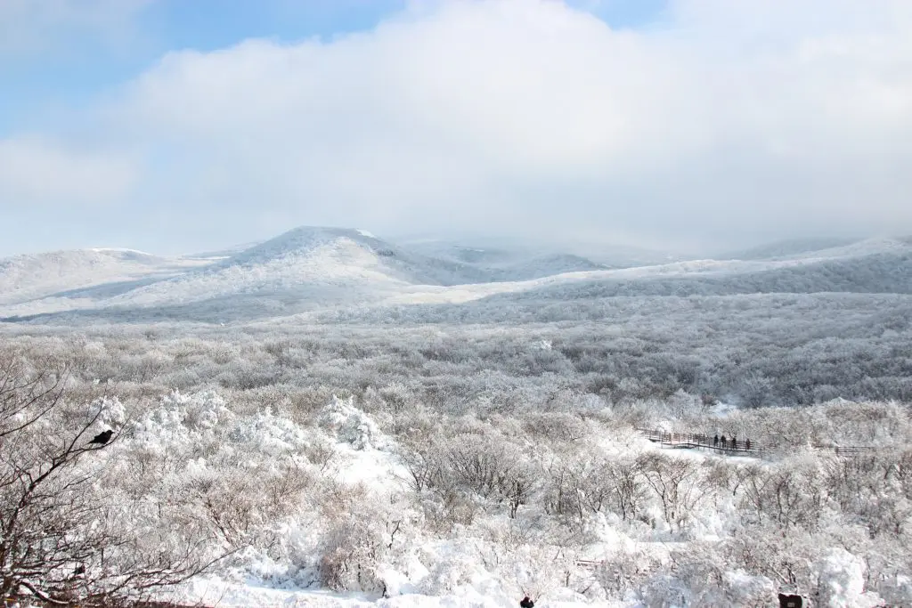 漢拏山每年會積雪 1–3 個月,是首爾南部最穩定的雪場之一。