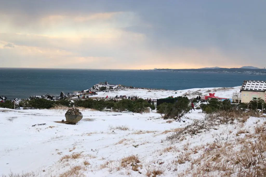 ✔ 西歸浦:相對更暖,下雪更少