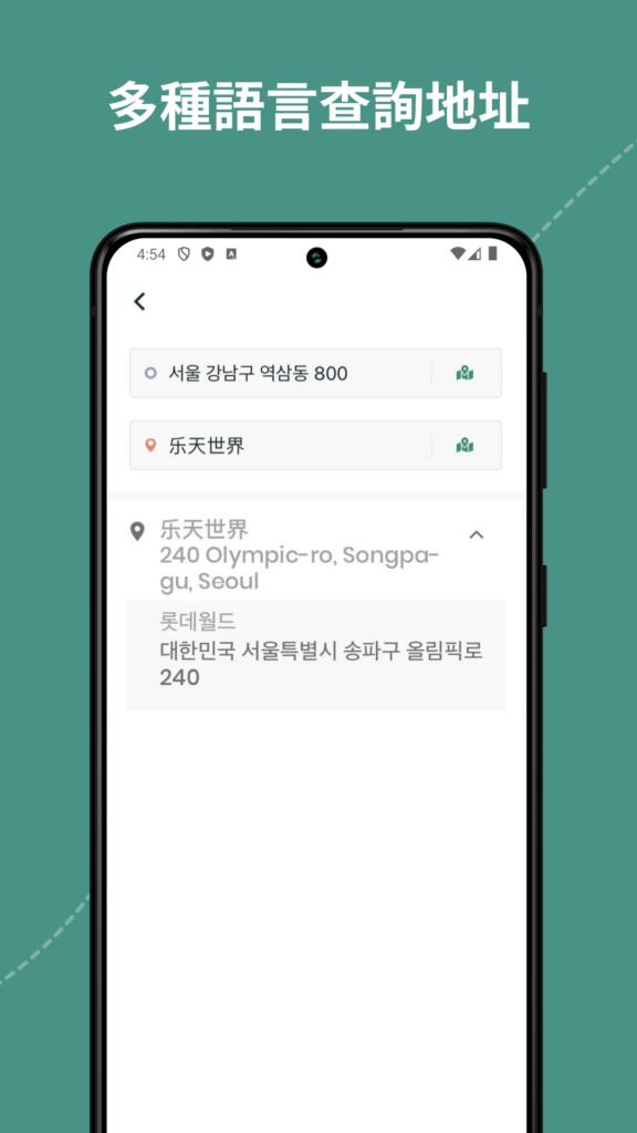 • 多語言支援:應用程式支援所有語言的地址搜尋,無需懂韓文。