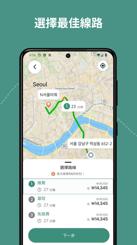 TABA應用程式的另一亮點是提供即時交通更新。用戶只需輸入目的地,即可獲得當前交通狀況、估計路線和費用的資訊。這功能特別有利於旅客更有效率地規劃旅程,避免意外的延誤或成本。此外,TABA提供多種路線選項,如推薦路線、最短路線和免收費路線。用戶還可以自由選擇不同類型的計程車,包括中型、大型和豪華車型,以滿足不同的需求和偏好。