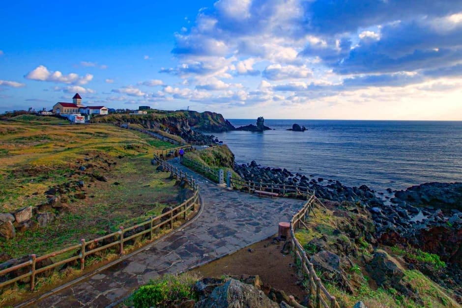 位於濟州東南端,地形像鼻端突出的海岬,春天油菜花滿開、陽光金黃、海水蔚藍,是濟州最繽紛的風景之一,也常是韓劇拍攝的熱門取景地。